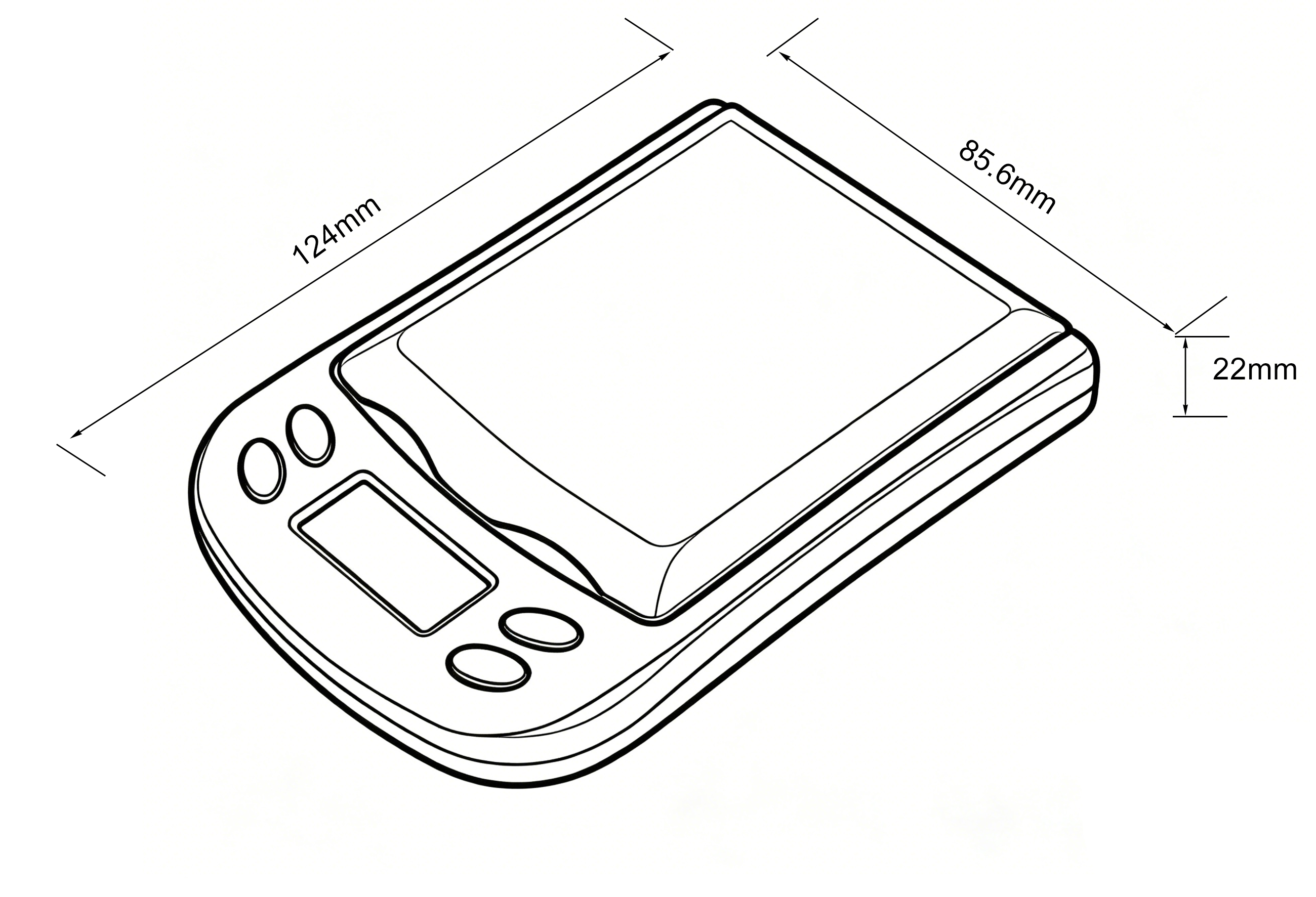 Pocket scale with simple counting function and other functions. Capacity 500g x 0,1g. Case for storage and protection against moisture and dust. Battery included.